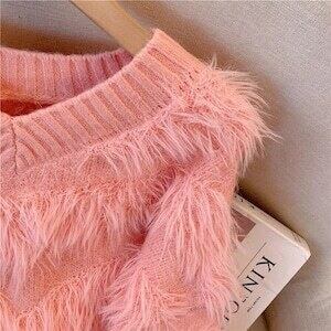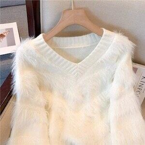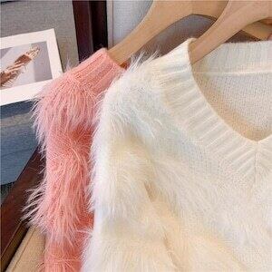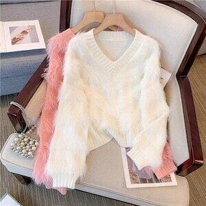 シャギーニット Vネックセーター カジュアル ガーリー E655