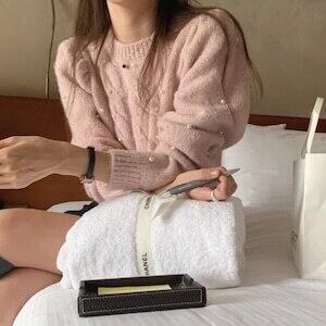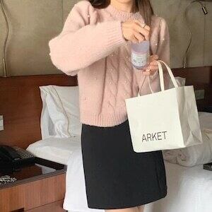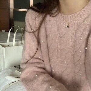 パールケーブルニット セーター カジュアル ガーリー E652