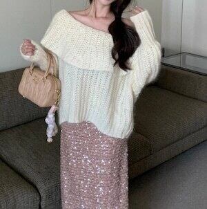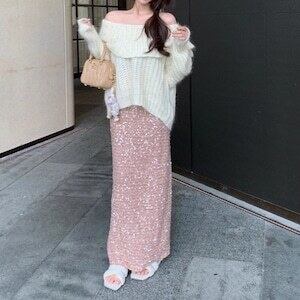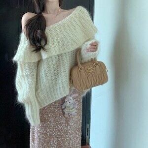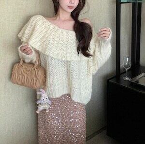 オフショルニット セーター フリル ガーリー デート E650