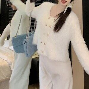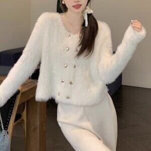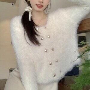 フェイクファーニット ハートボタン セーター フェミニン デート E648