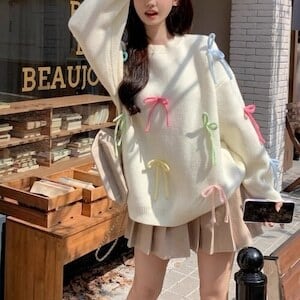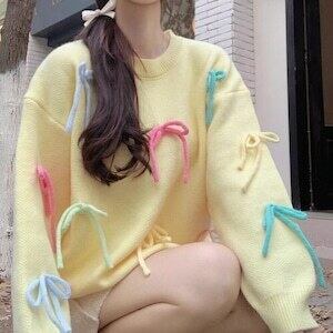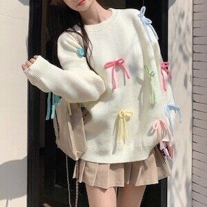 リボンモチーフセーター ニット ガーリー カラフル E647