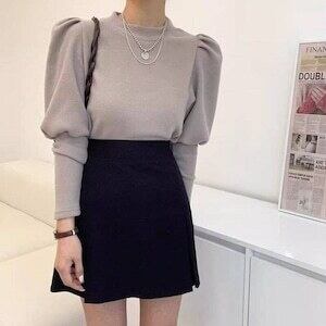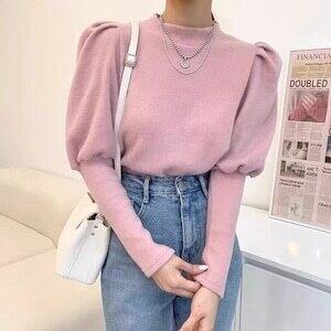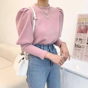 パフスリーブニット ボトルネック トップス カジュアル ガーリー E571