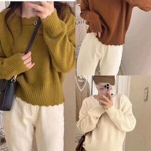レースカラーニット ベーシックセーター 無地 カジュアル E527