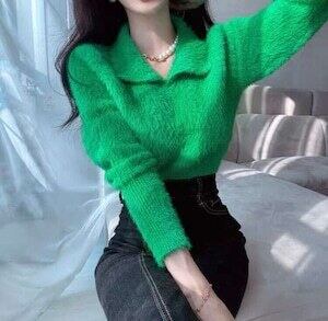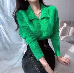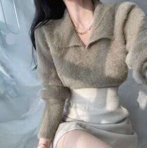 シャギーニット ポロトップス ニット カジュアル E515