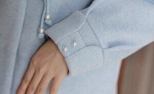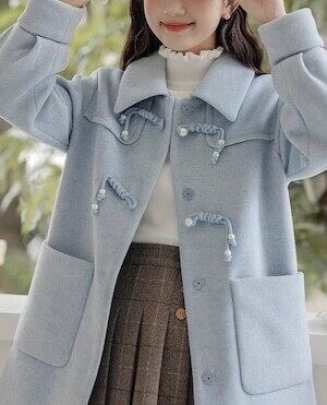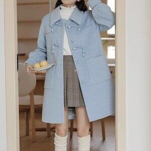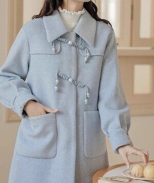 パステルブルーコート ミドルコート チャイナ風ボタン ガーリー E666