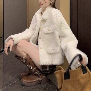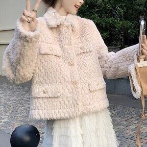 フェイクファーコート ジャケット ショート丈 フェミニン E658