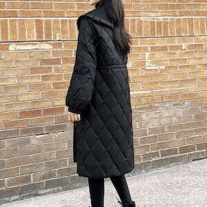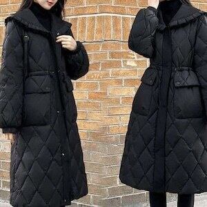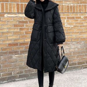 フリルカラーロングコート ロングジャケット ウエストマーク エレガント E598