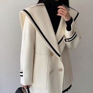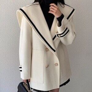 セーラーカラーコート ウールコート ダブルボタン ガーリー デート E590