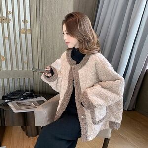 ノーカラーコート もこもこ ショート丈 カジュアル ガーリー E578