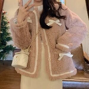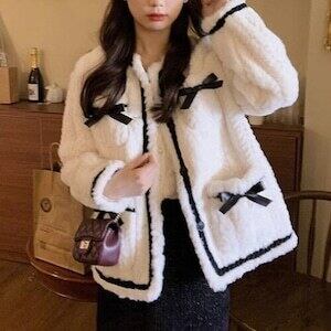 フェイクファーコート ジャケット リボン ボアコート ガーリー E552