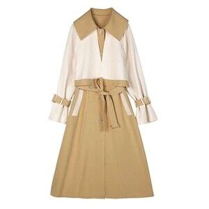バイカラーロングコート トレンチ風 リボン付 エレガント ガーリー E506