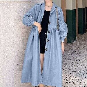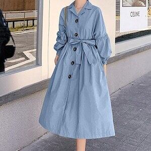 フレアトレンチコート ボリューム袖 リボン ガーリー カジュアル E503