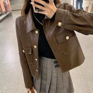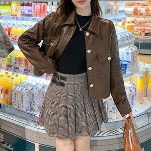 フェイクレザージャケット ゴールドボタン エレガント きれいめ E584
