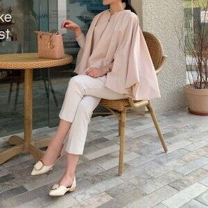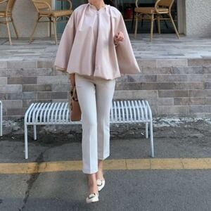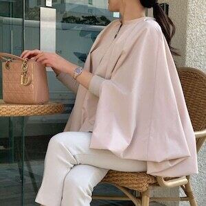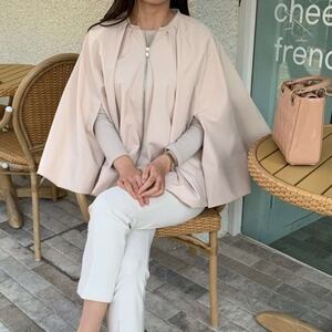 ケープジャケット ノーカラー ベルト付 エレガント E508