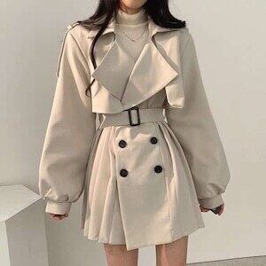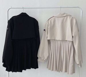 プリーツトレンチコート ショート丈 トレンチ ガーリー E458