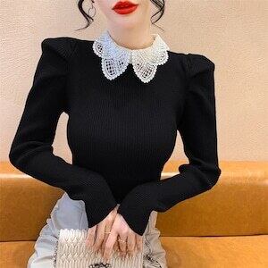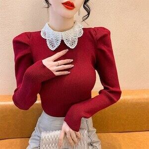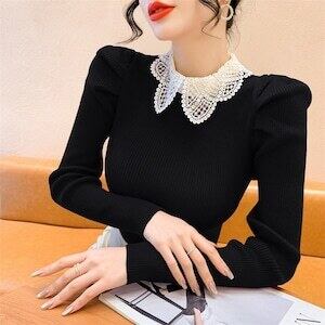 レース襟付ニット セーター オフィスカジュアル お呼ばれ E719