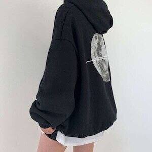 バックプリントパーカー ムーンモチーフ トレーナー カジュアル E681