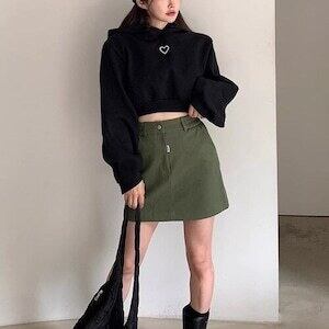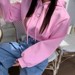 ワンポイントハートパーカー トレーナー ショート丈 ガーリー E623