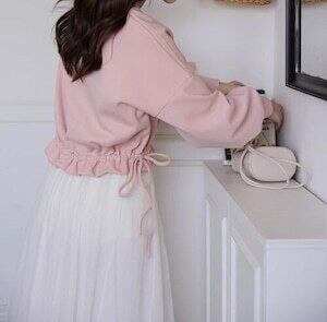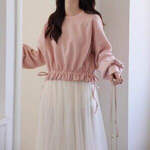 ウエストギャザートレーナー リボン スウェット ガーリー E622