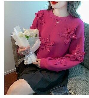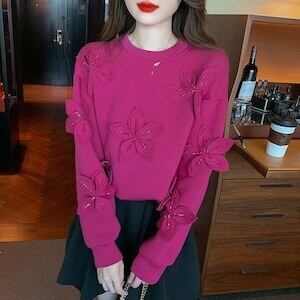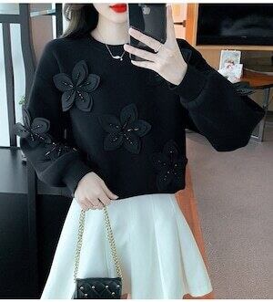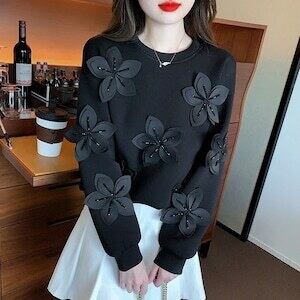 フラワーモチーフトレーナー トップス エレガント ガーリー E615