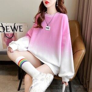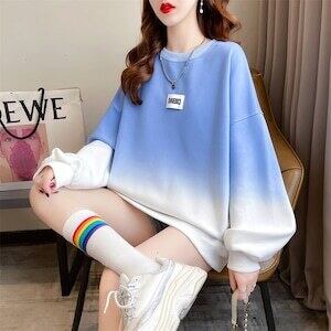 グラデーショントレーナー バックプリント オーバーデザイン カジュアル E607