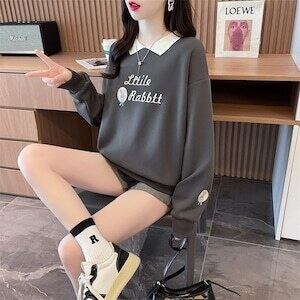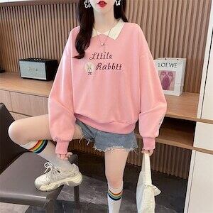ラビットモチーフトレーナー 襟付き パーカー ガーリー E605