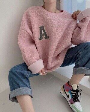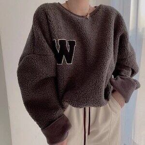 ボアトレーナー イニシャルロゴ 裏起毛 カジュアル オーバーシルエット E603