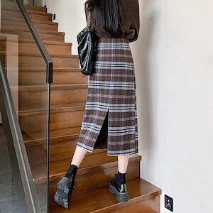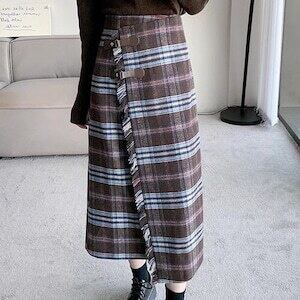 チェック柄スカート ウールスカート レトロ ガーリー E714