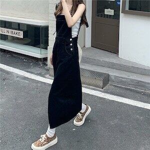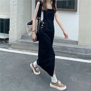 デニムサロペット デニムスカート カジュアル ガーリー E398