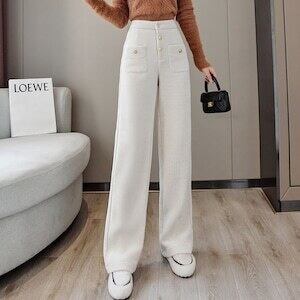 ストレートパンツ コーデュロイ ハイウエスト カジュアル エレガント E520