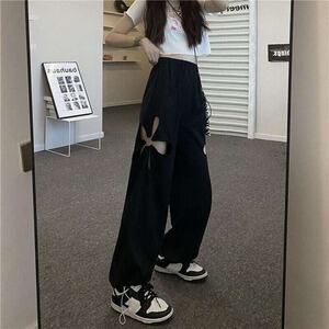 デザインパンツ ワイドパンツ カジュアル フラワーモチーフ E367