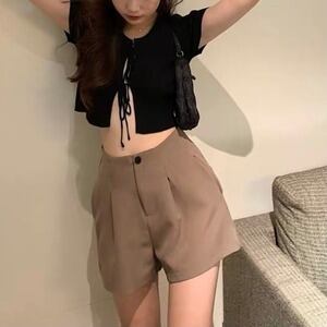 ハイウエストショートパンツ Aライン エレガント クラシック E350