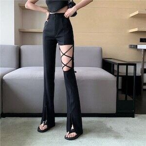 デザインパンツ ブラックパンツ ハイウエスト ガーリー E345