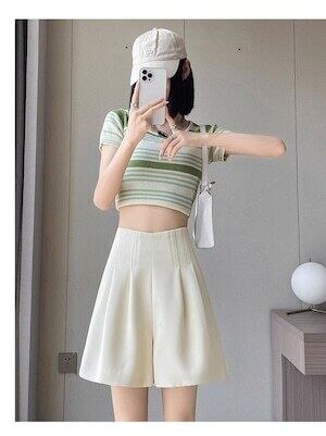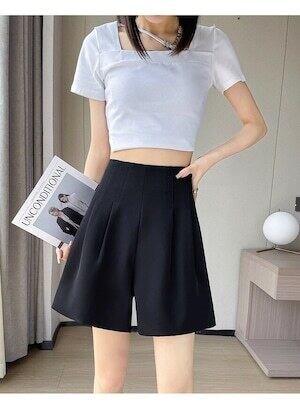 ハーフパンツ ハイウエスト プリーツ エレガント E311