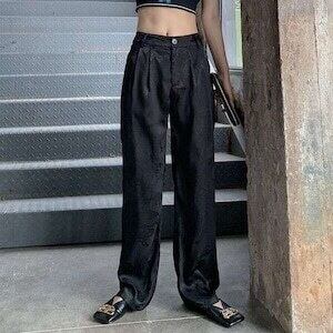 ドラゴンモチーフパンツ ハイウエスト パンツ ボトムス カジュアル E105
